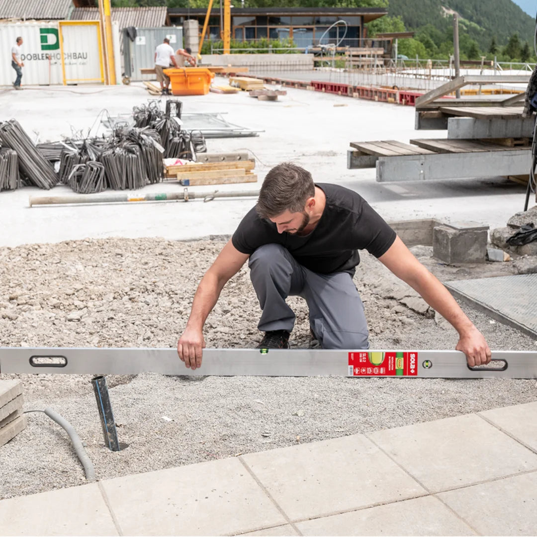 Disponibil în lungimi de 200 cm, 250 cm și 300 cm, dreptarul SLXG2 este ideal pentru nivelări ample, șape, finisaje și aliniamente lungi. Profilul de 100 × 18 mm și greutatea optimizată de 700 g/m asigură stabilitate și acuratețe în timpul măsurătorilor, fără a compromite manevrabilitatea.