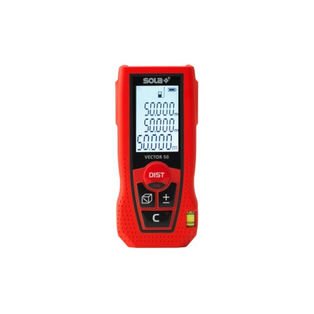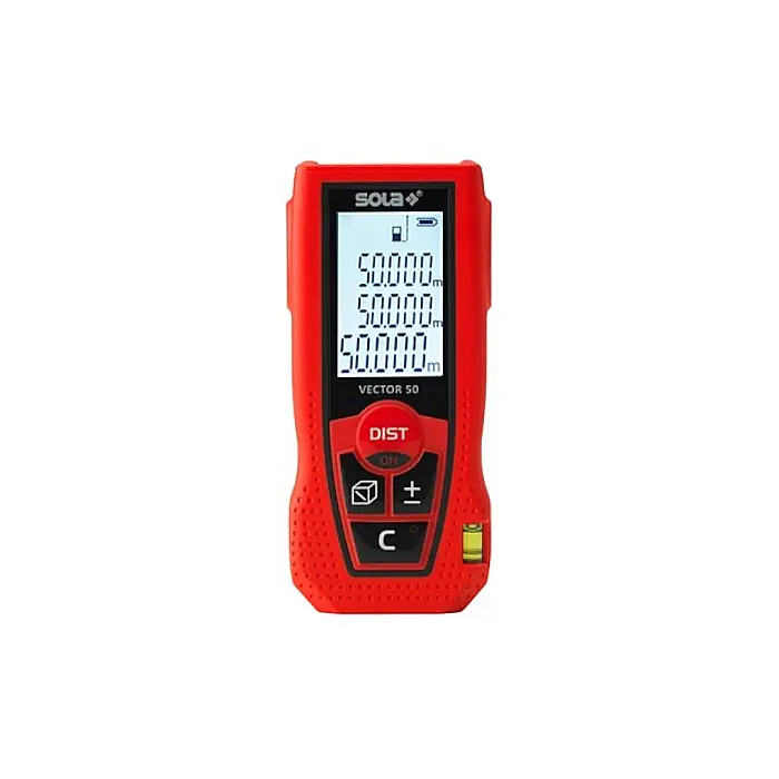 Telemetru VECTOR 50 de la SOLA este conceput pentru măsurători rapide, precise și versatile în interior și exterior. Compact și ușor de utilizat, acest telemetru oferă afișaj iluminat cu 3 linii pentru citire clară, chiar și în condiții de lumină scăzută. Cu o toleranță de ±1,5 mm și interval de măsurare între 0,15 m și 50 m, VECTOR 50 este instrumentul ideal pentru profesioniștii care au nevoie de rezultate precise și fiabile.