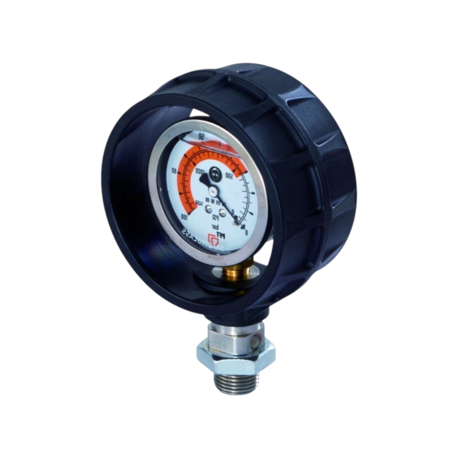 Manometru robust pentru pompe de amestec, cu domeniu de masurare 0-100 bar, proiectat pentru monitorizarea precisa a presiunii aerului si apei in procesul de amestecare. Ideal pentru utilizare in pompe de tencuit si mortar, rezistent la vibratii si conditii de lucru variate.