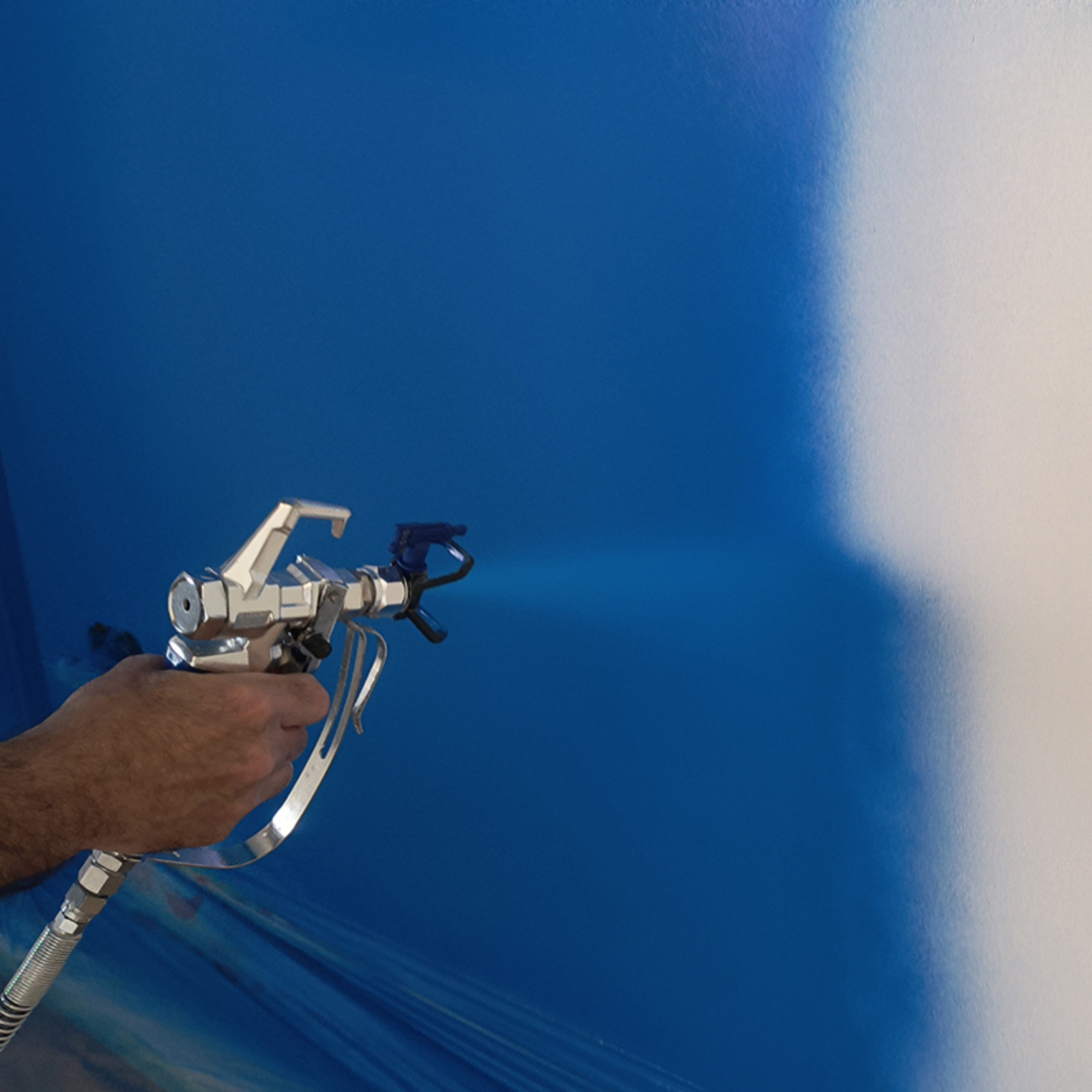 Compact și foarte practic pe șantier datorită panoului de control simplificat, pompei cu demontare rapidă, furtunului de alimentare articulat pentru aspirarea directă a vopselei din găleată, tamburului pentru cablu și șasiului robust cu suporți din cauciuc.