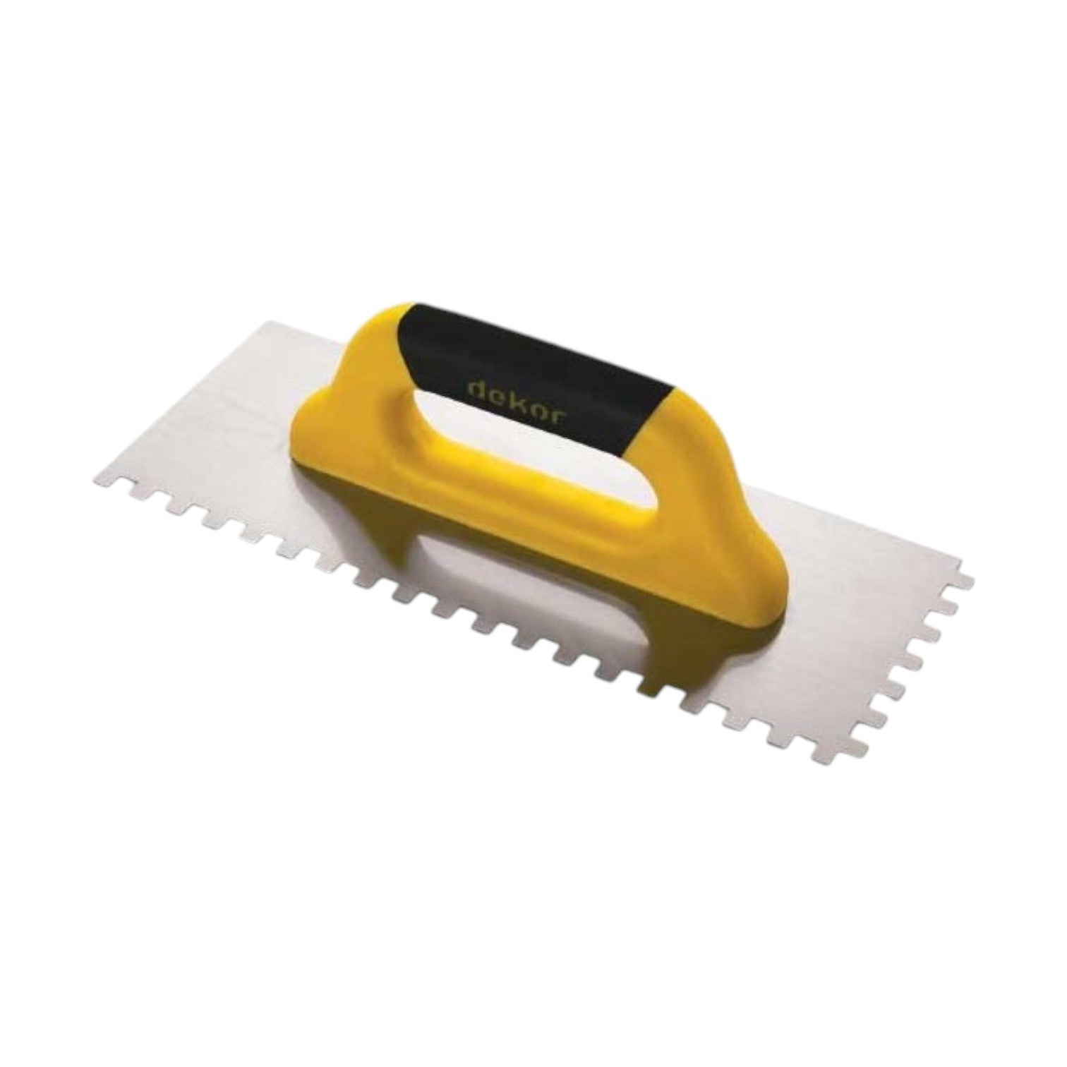 Gletiera Inox cu Dinti DEKOR este o unealta profesionala din inox cu dinti 12×12 mm si maner inchis ergonomic din cauciuc, ce permite utilizarea pe ambele parti. Ideala pentru aplicarea uniforma a adezivilor, datorita dintilor de 12×12 mm. Disponibila in doua dimensiuni — 40 cm si 50 cm — aceasta gletiera ofera versatilitate pentru diverse lucrari.