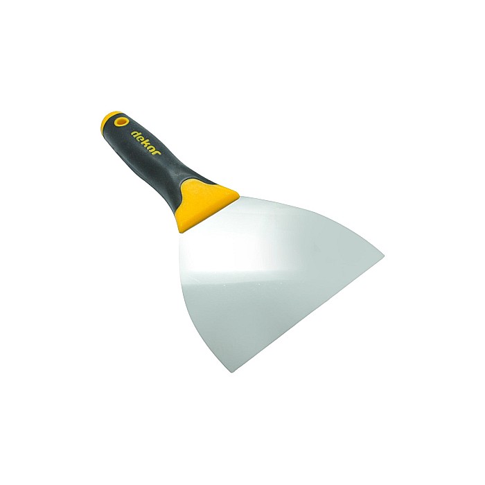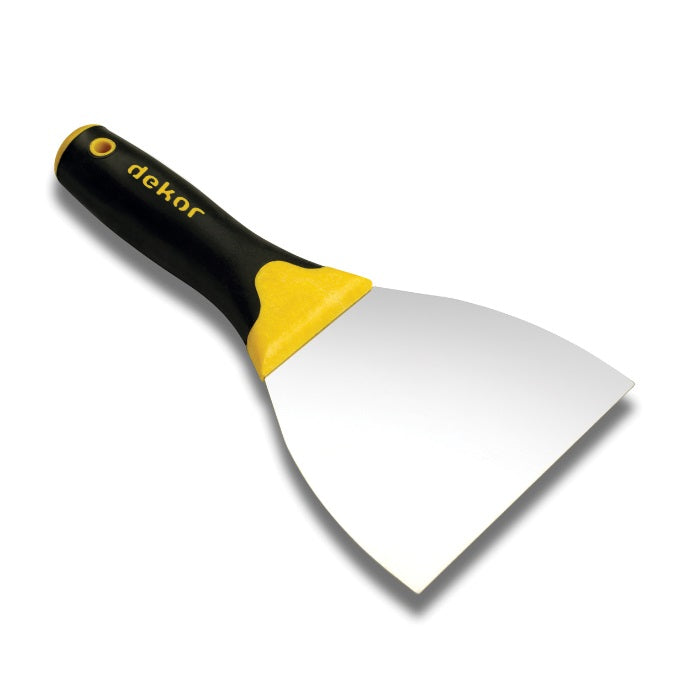 Spaclu Inox DEKOR Lama Flexibila — spaclu din inox cu lama flexibila si maner cauciuc. Lama din otel arc pentru elasticitate. Disponibil in 6 cm, 8 cm, 10 cm, 14 cm. Producator DEKOR.